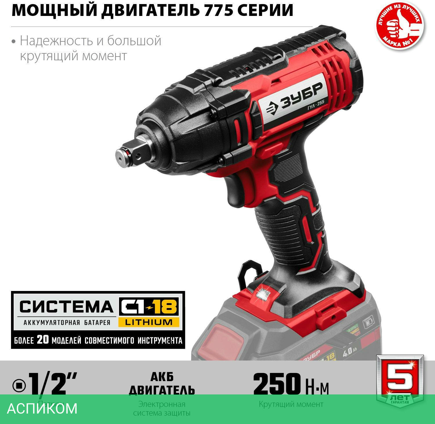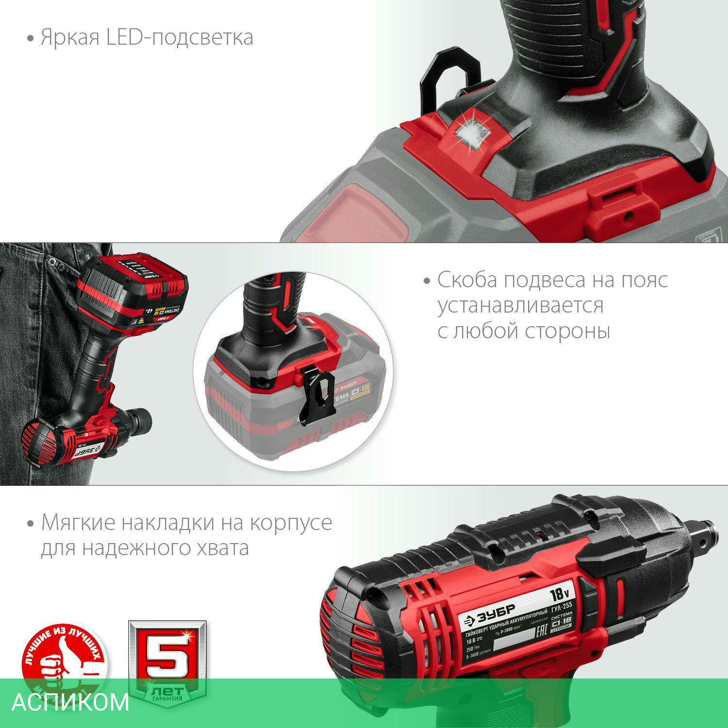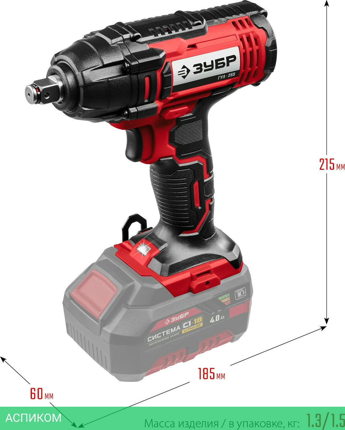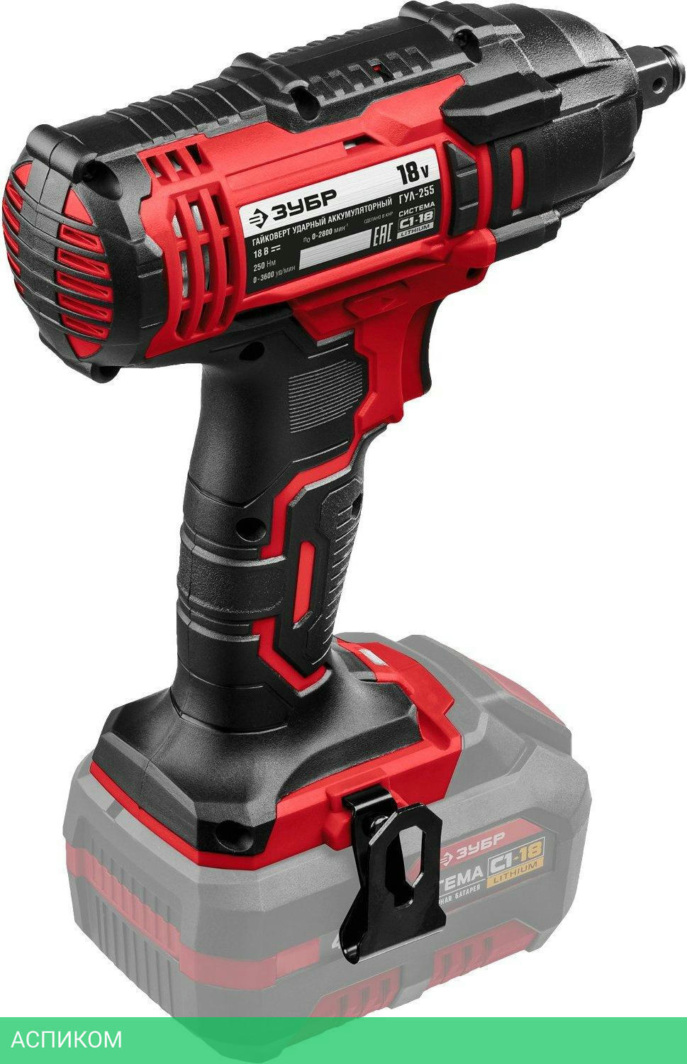 гайковерт / аккумулятор / нет / 18.0 / четырехгранник 1/2" / нет / 250.0 / 1/2 / 2800.0 / 1.3 / Li-ion / 0.0