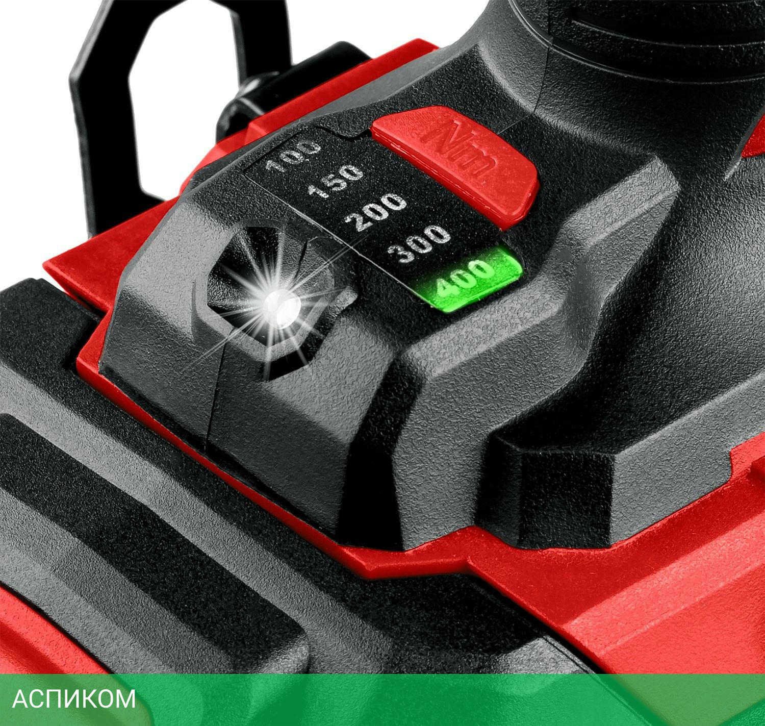 Мощное изделие для заворачивания/отворачивания крепежа (при сборке/разборке металлических конструкций, снятии/установке колес автомобиля и т.д.) благодаря крутящему моменту 400 Нм. Огромный регулируемый крутящий момент и увеличенная емкость аккумулятора.