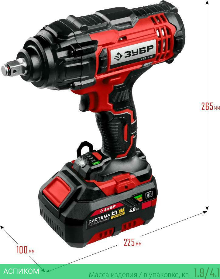 гайковерт / аккумулятор / да / 18.0 / четырехгранник 1/2" / да / 400.0 / 1/2 дюйм / 2300.0 / 2.6 / Li-ion / 4.0