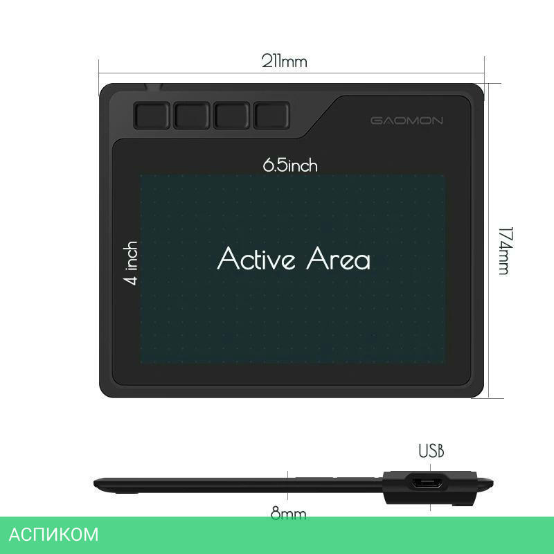проводной / перьевой / перо / черный / 160x100 / 5080.0 / 266.0 / нет / microUSB