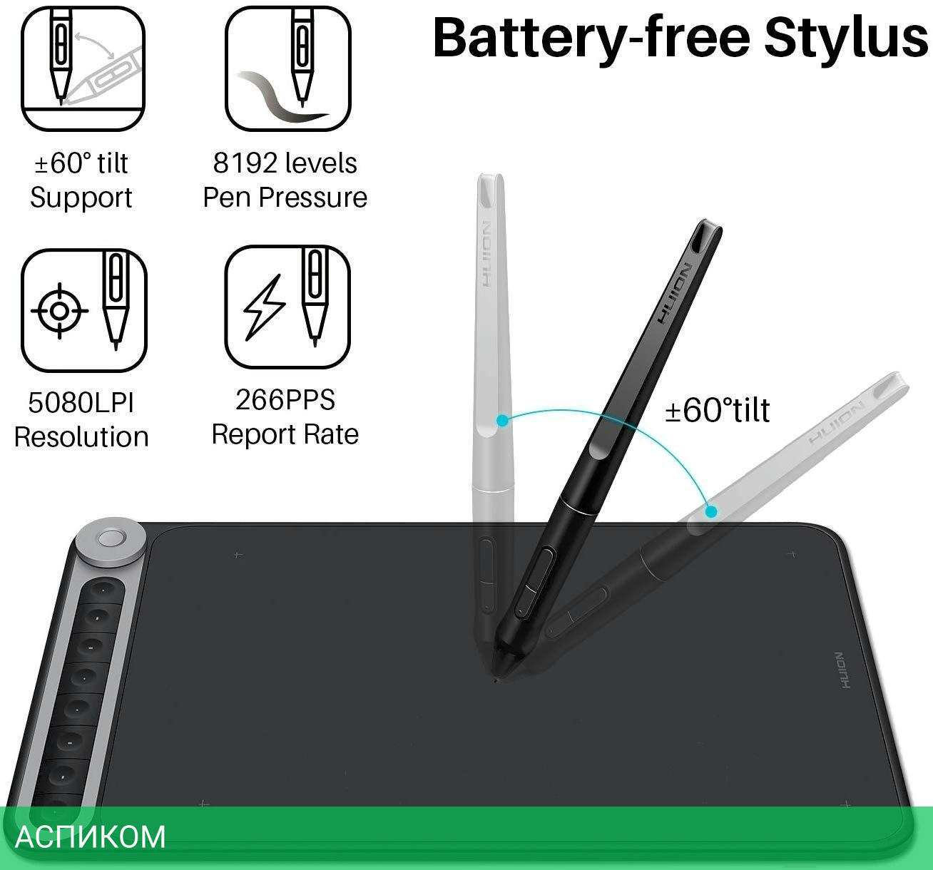 проводной; беспроводной / перьевой / перо / 266.7x166.7 / 5080.0 / 266.0 / нет / USB Type-C; microUSB / черный
