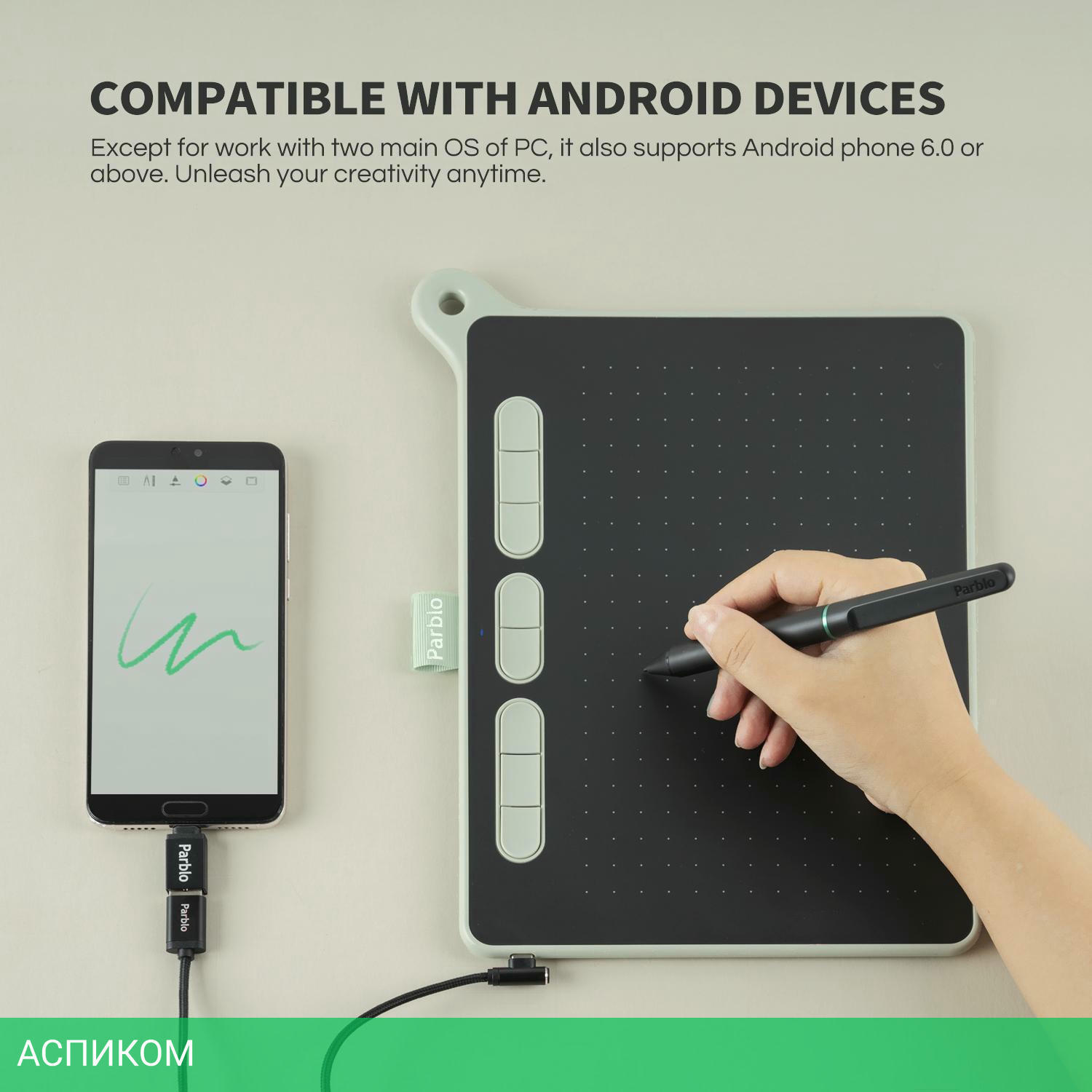 проводной / перьевой / перо / 228.6x127 / 5080.0 / 260.0 / нет / USB Type-C / зеленый
