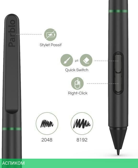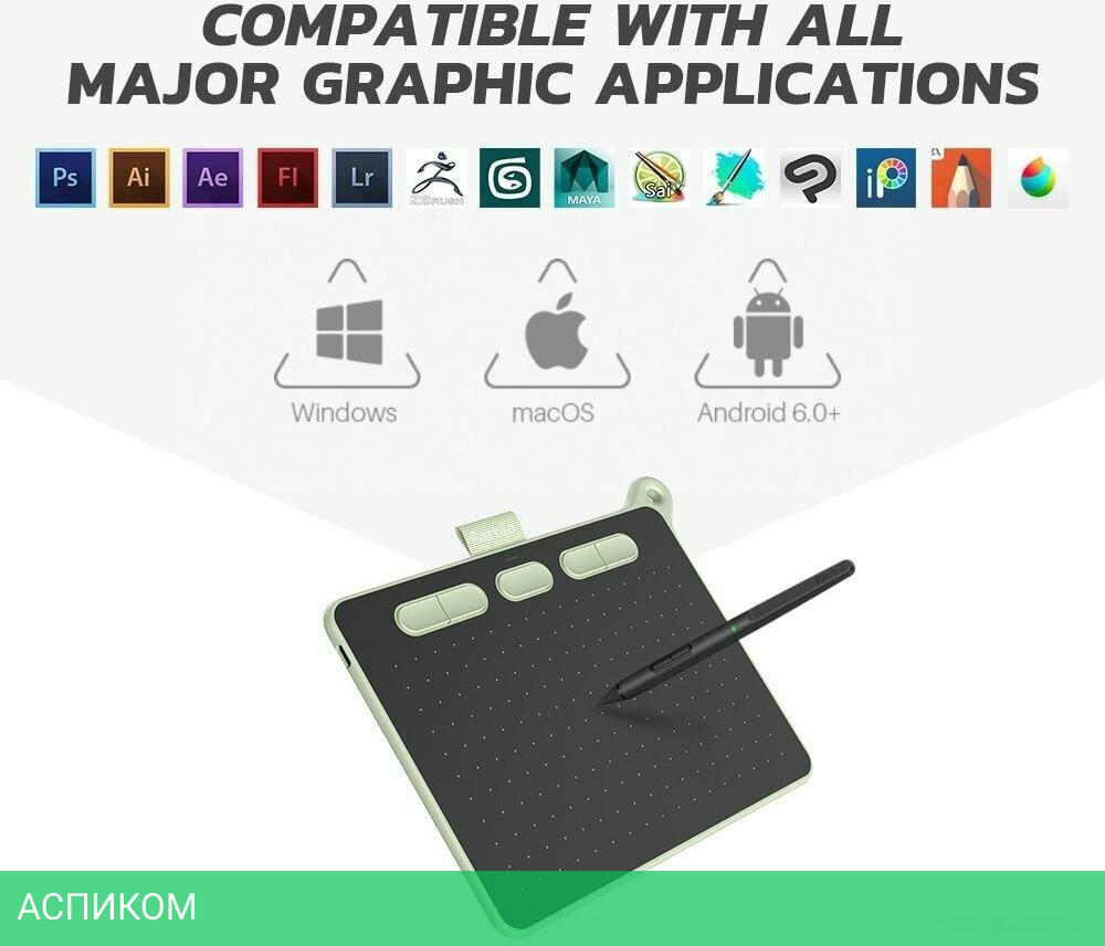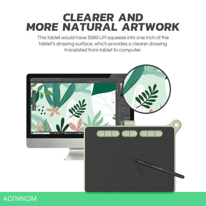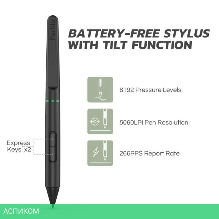 проводной / перьевой / перо / 101.6x152.4 / 5080.0 / 260.0 / нет / USB Type-C / зеленый