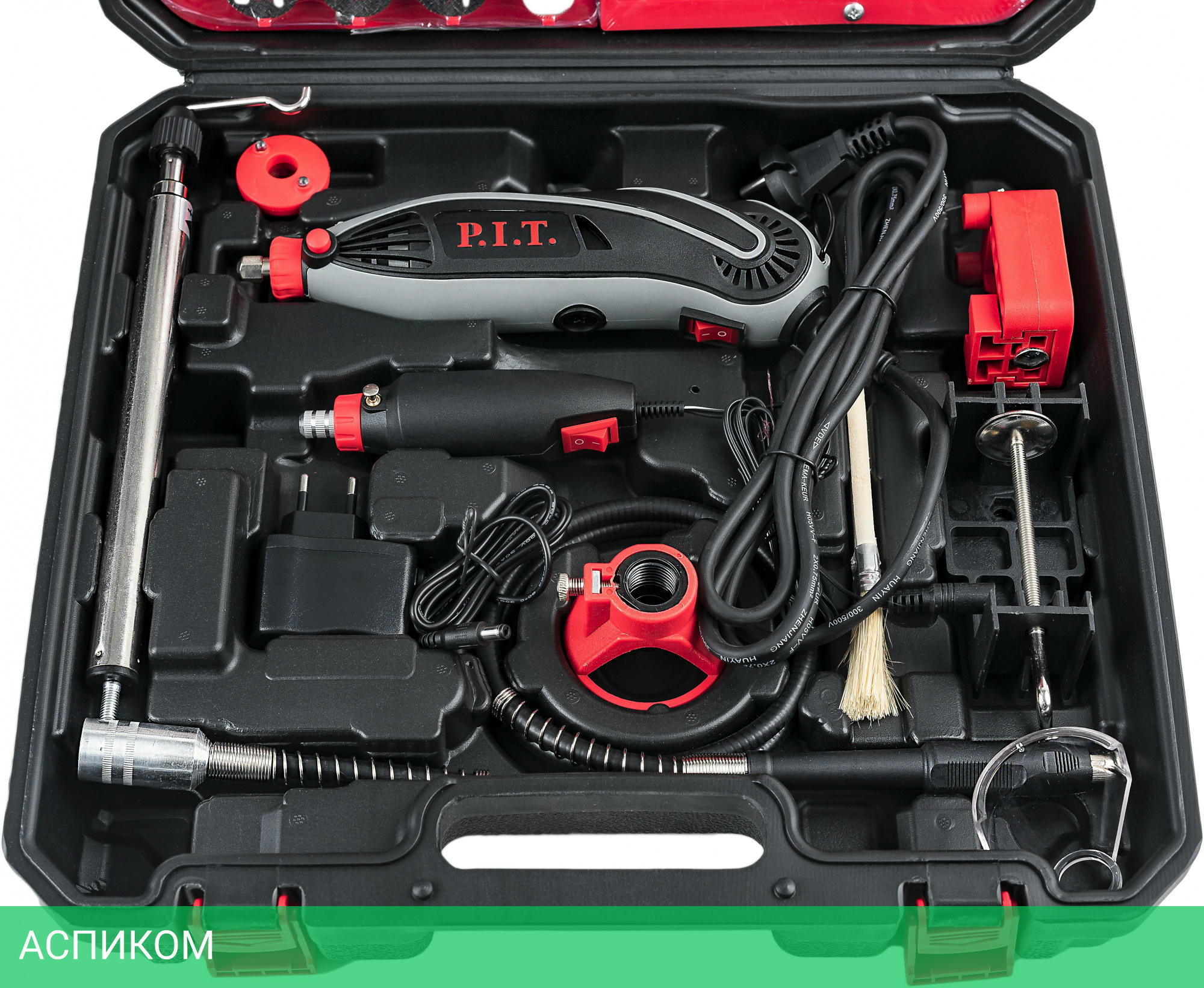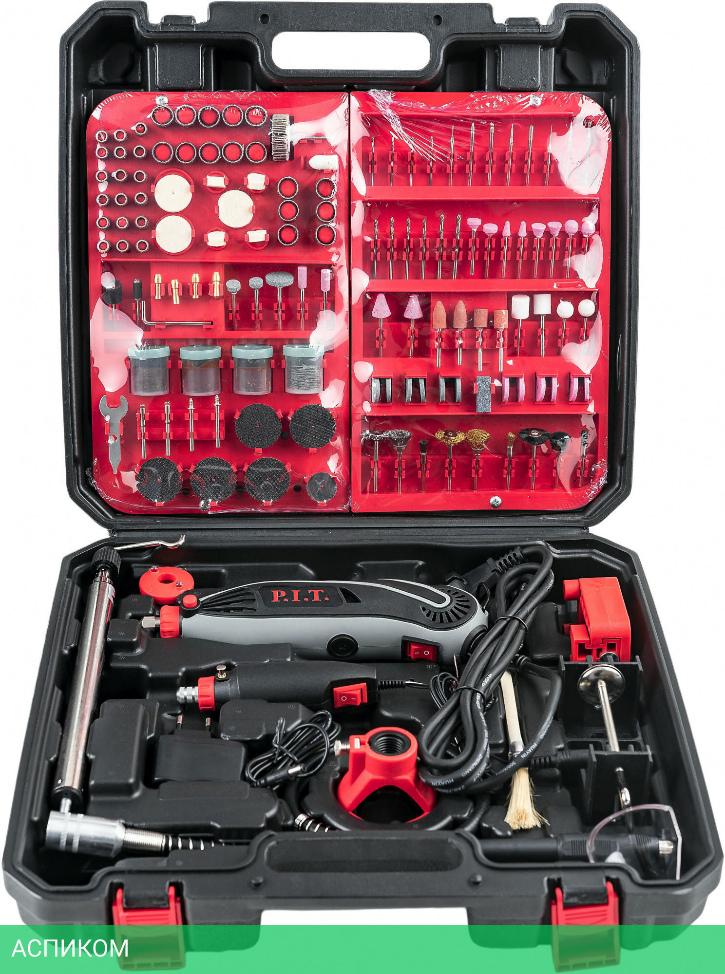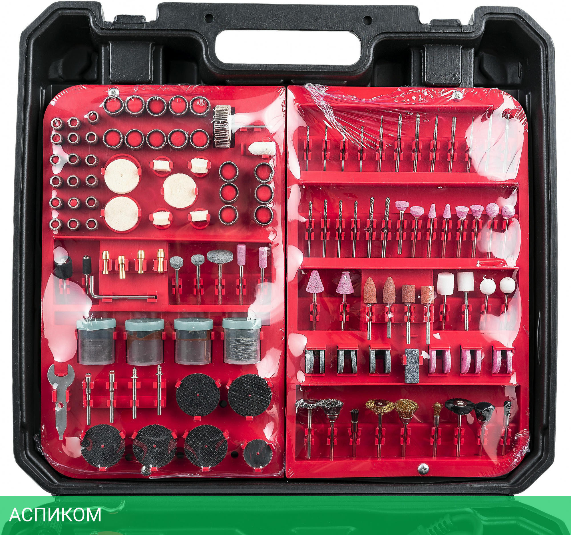 - Гравер 150 Вт- Бормашина 12 вольт- Адаптер 12 вольт- Комплект из 350 принадлежностей- Кисть для удаления стружки- Цанги- Подсветка на диодах- Телескопический штатив- Гибкий вал- Пластиковый кейс