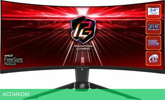 <p> 34", 3440x1440, 21:9, изогнутый, кривизна 1500R, VA, 165 Гц, яркость 550 нит, динамики, HDMI+DisplayPort, регулировка высоты </p>