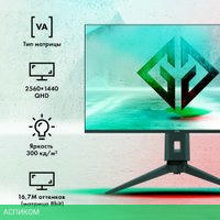 <p> 27", 2560x1440, 16:9, VA, 165 Гц, глубина 8 бит, яркость 300 нит, динамики, HDMI+DisplayPort, регулировка высоты, портретный режим </p>