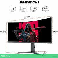 <p> 34", 3440x1440, 21:9, изогнутый, кривизна 1000R, VA, 165 Гц, глубина 8 бит, HDMI+DisplayPort, регулировка высоты </p>