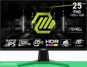 ✅ MSI MAG 255X – это 24.5-дюймовый игровой монитор с разрешением Full HD (1920x1080), который оснащен современной Rapid IPS-матрицей и поддерживает частоту обновления до 300 Гц. Такой высокий показатель обеспечивает невероятную плавность картинки, что особенно важно для динамичных жанров игр, таких как шутеры, гонки и киберспортивные дисциплины. Время отклика 0.5 мс (GtG) минимизирует размытие и артефакты при резких движениях.