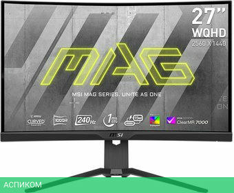 <p> 27", 2560x1440, 16:9, изогнутый, кривизна 1000R, VA, 240 Гц, глубина 8 бит + FRC, яркость 300 нит, HDMI+DisplayPort+USB Type-C, питание по USB-C до 15 Вт, регулировка высоты </p>