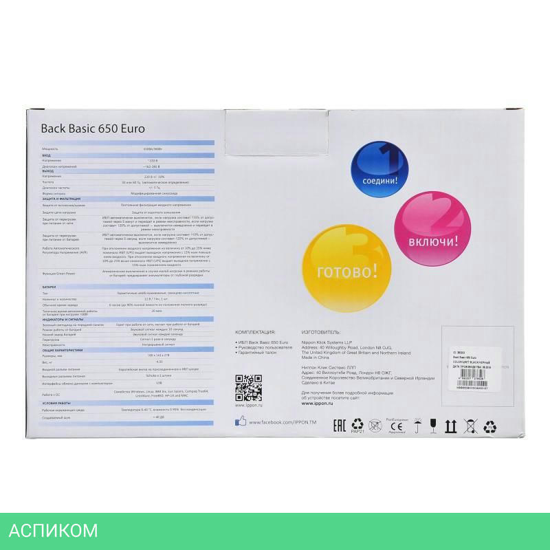 КПД в режиме AVR >88%; батарея 12В/7Ач х 1 шт