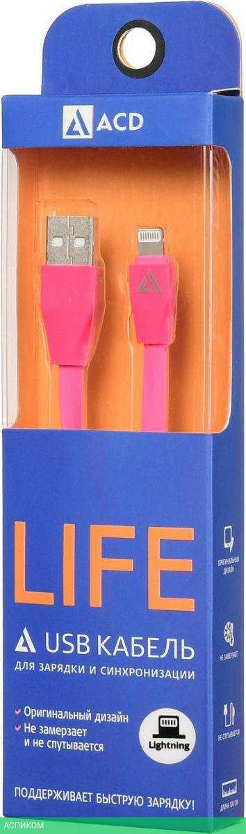 кабель / для смартфонов и планшетов / передача данных; питание устройств / розовый / Lightning; USB 2.0 Type-A / 1.0