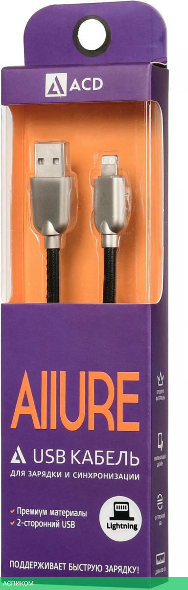 кабель / для смартфонов и планшетов / передача данных; питание устройств / черный / USB 2.0 Type-A; Lightning / 1.0
