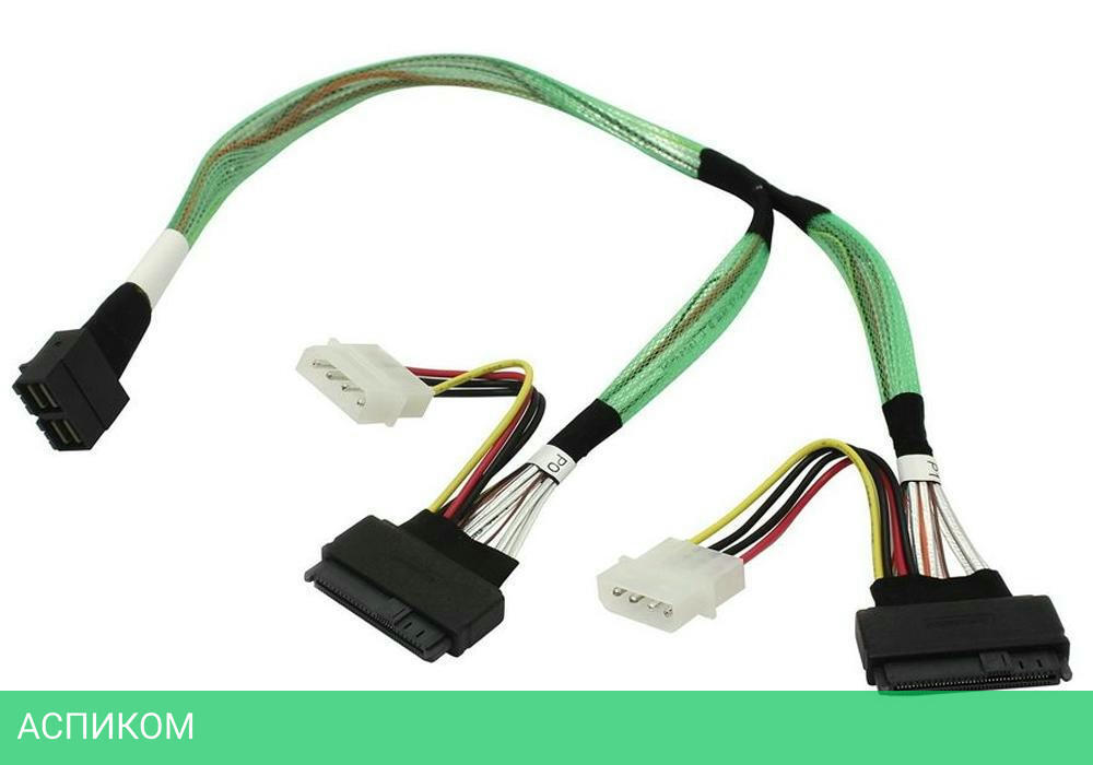переходник / для серверного оборудования / передача данных / mini SAS HD; MOLEX; 4-pin / 0.5 / зеленый