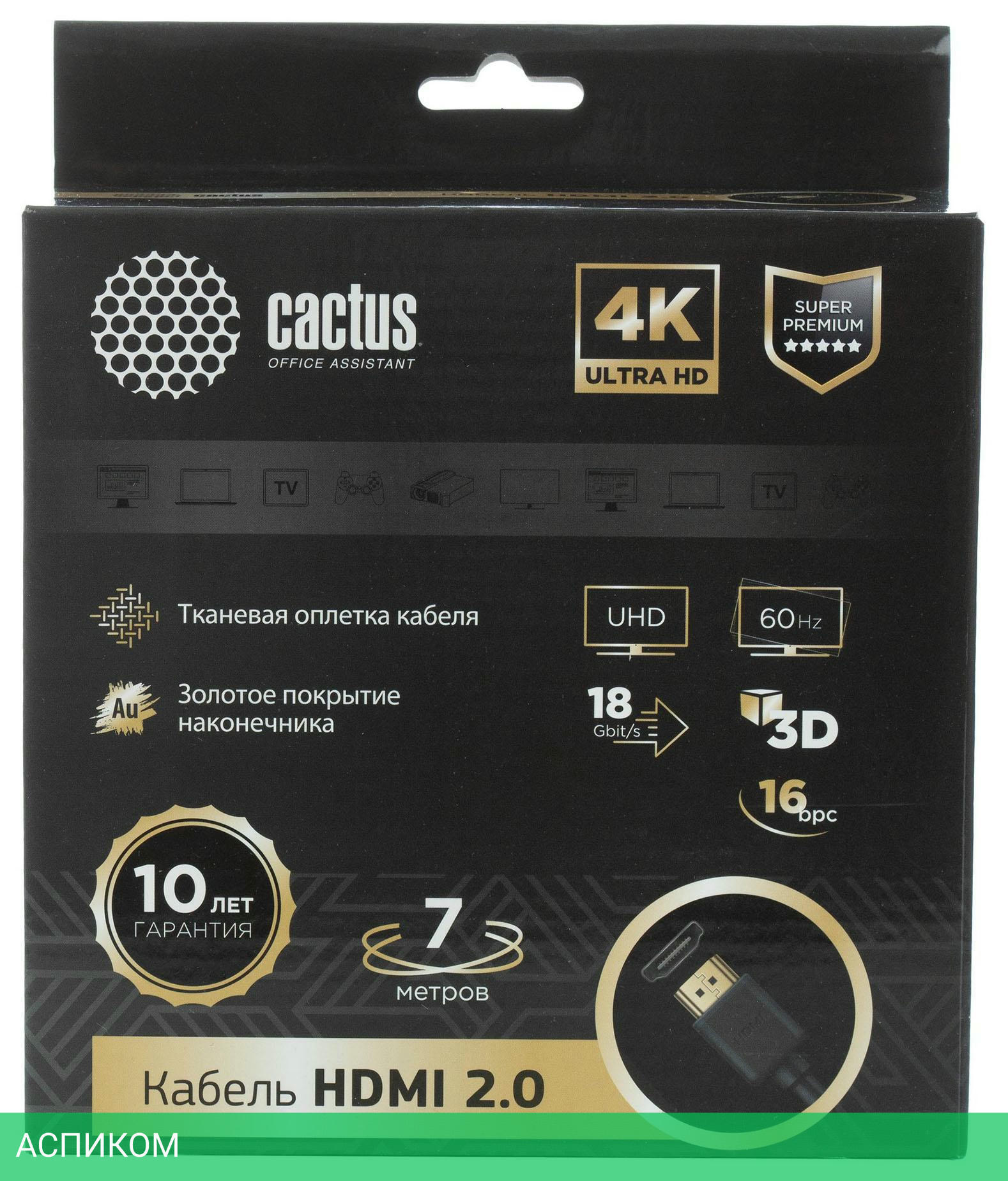 черный / кабель / для av-аппаратуры; для монитора/телевизора / HDMI / передача видео; передача аудио / 7.0