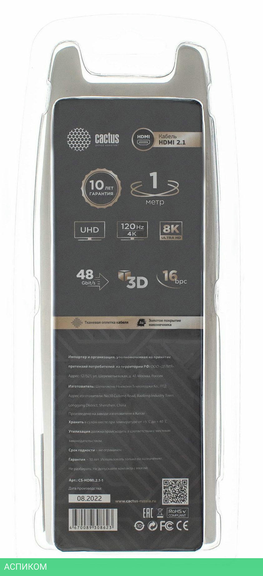 кабель / для av-аппаратуры / HDMI / серебристый / передача видео; передача аудио / 1.0