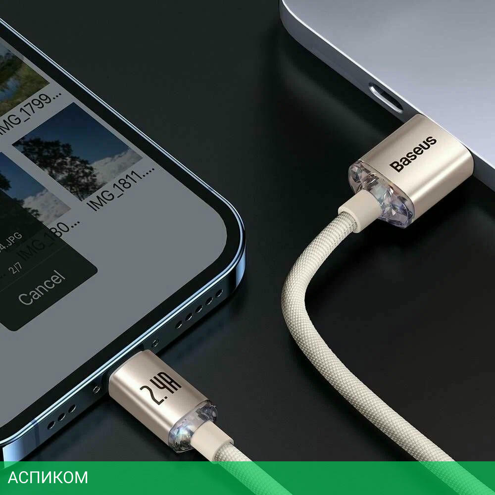 кабель / для смартфонов и планшетов / передача данных; питание устройств / Lightning; USB 3.0 Type-A / 1.2 / светло-розовый