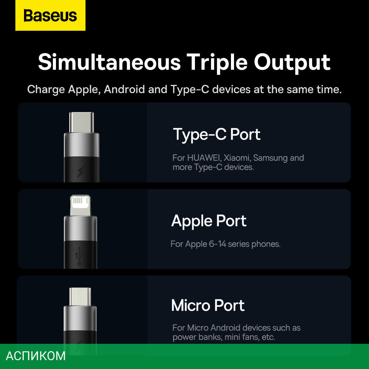 рассчитан на длительное и интенсивное использование; используемая специальная оплетка предотвращает истирание и разрыв кабеля; отлично подходит для людей с несколькими устройствами от разных производителей; стильный дизайн впишется в любую обстановку