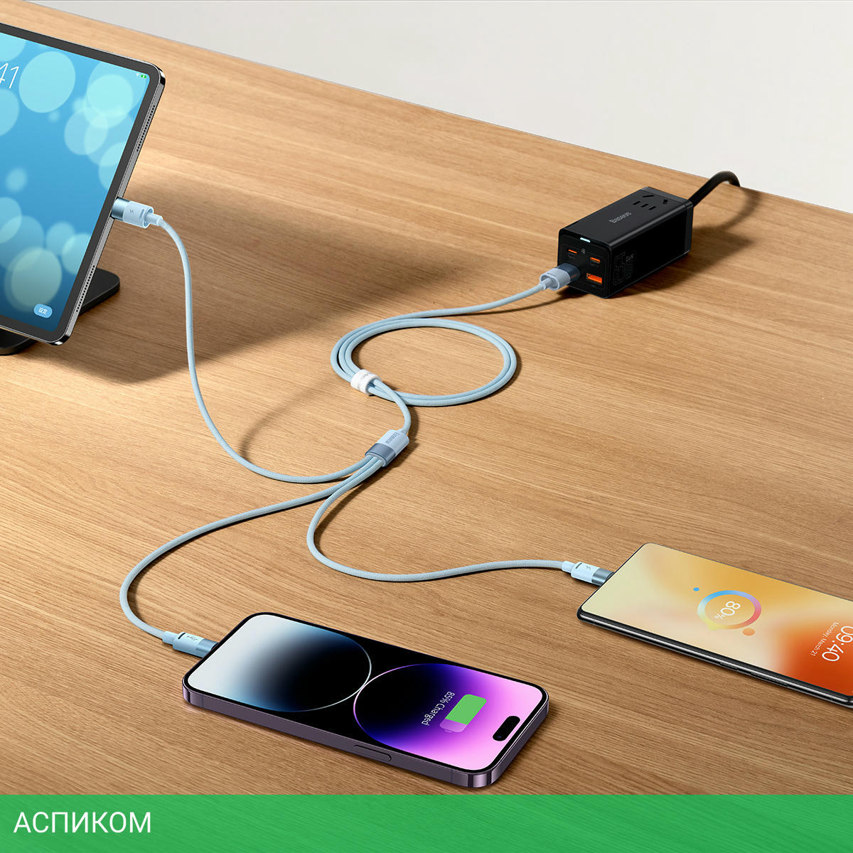 кабель / для смартфонов и планшетов / передача данных; питание устройств / черный; серый / USB 3.2 Gen2 Type-C; Lightning; microUSB 2.0 / 1.2