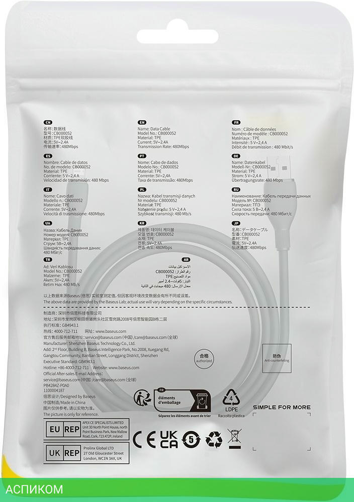 кабель / для смартфонов и планшетов / передача данных; питание устройств / Lightning; USB 2.0 Type-A / 1.2 / черный