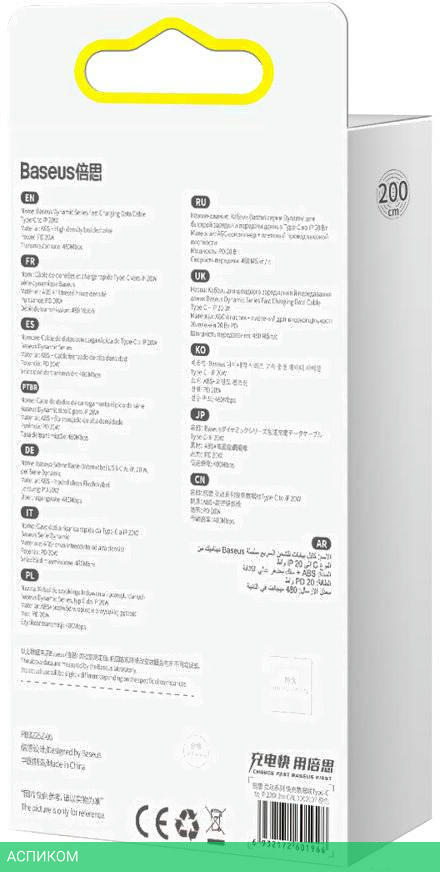 оранжевый / кабель / для смартфонов и планшетов / передача данных; питание устройств / USB 2.0 Type-C; Lightning / 2.0