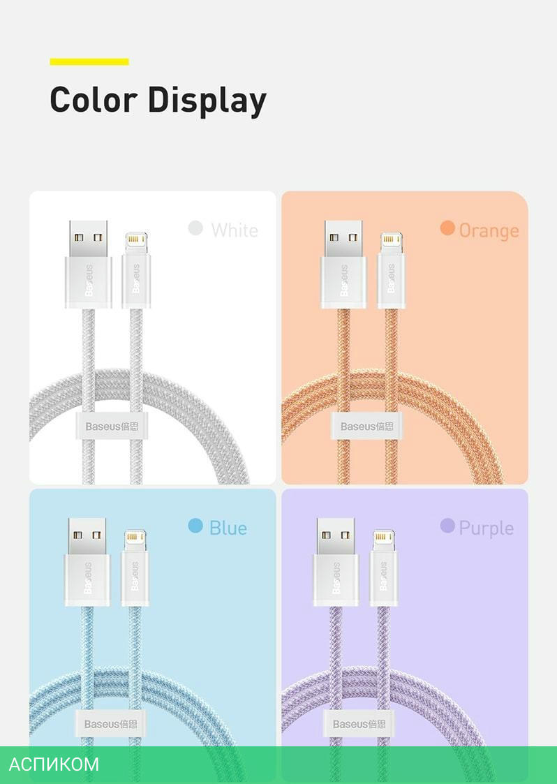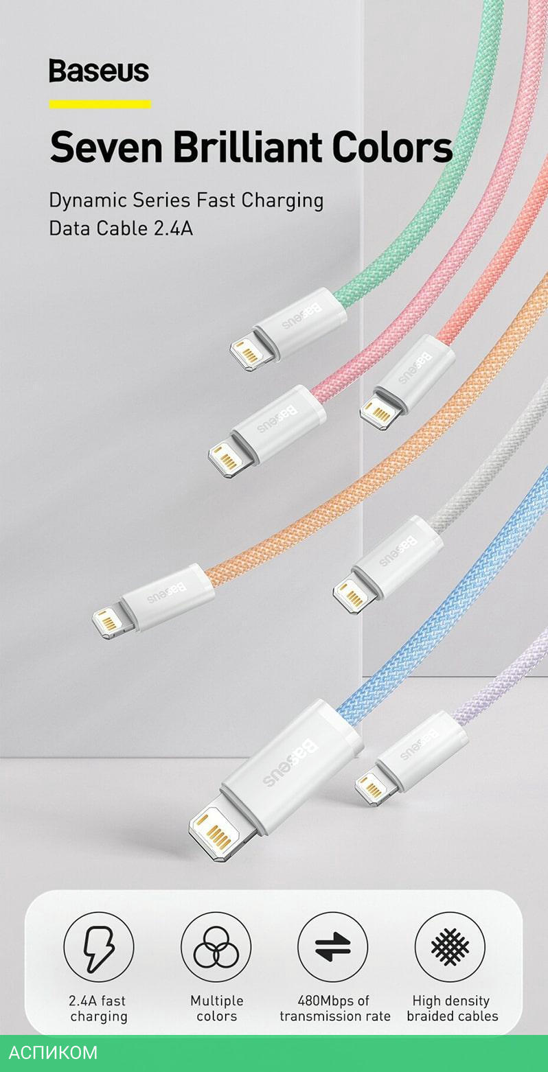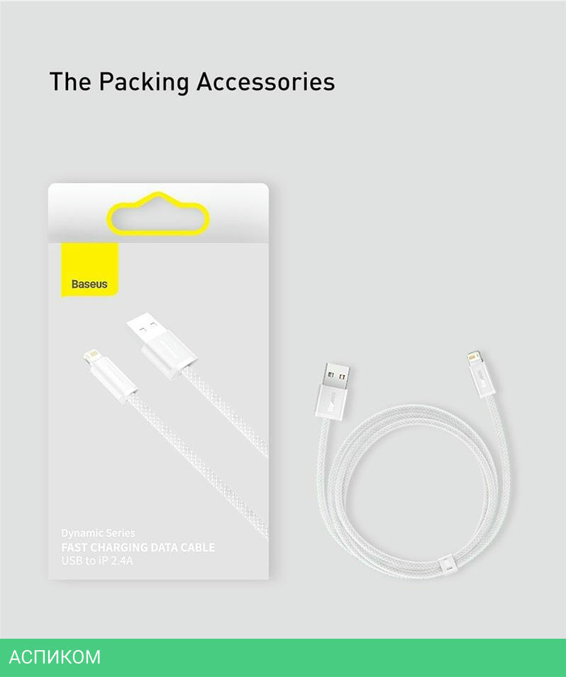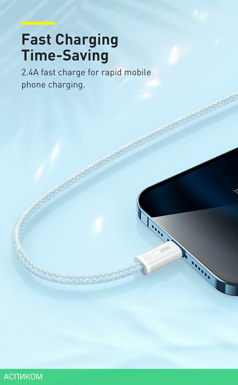 кабель / для смартфонов и планшетов / передача данных; питание устройств / Lightning; USB 2.0 Type-A / 2.0 / белый