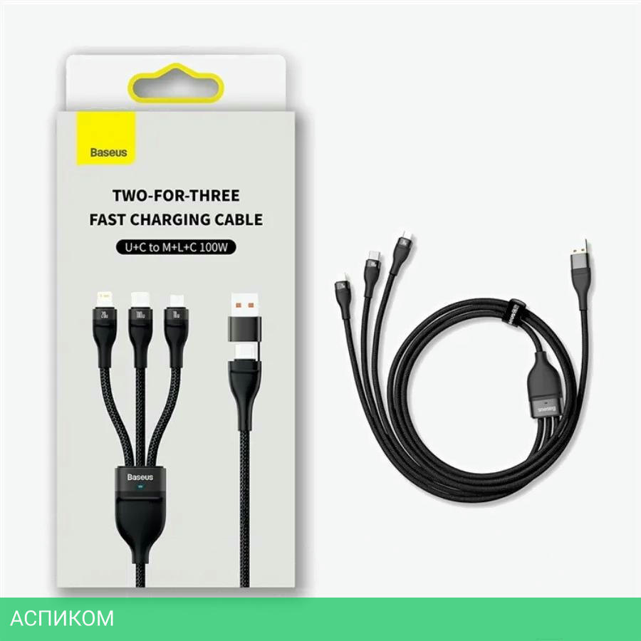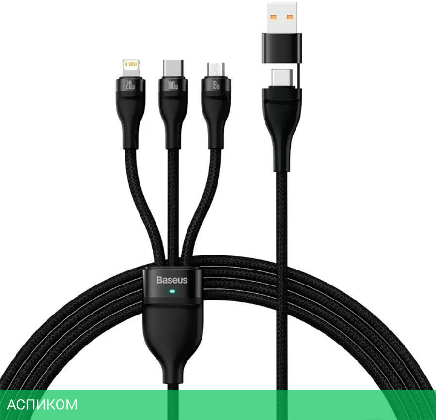 кабель / для смартфонов и планшетов / передача данных; питание устройств / USB 2.0 Type-C; Lightning; USB 2.0 Type-A; microUSB 2.0 / 1.2 / черный