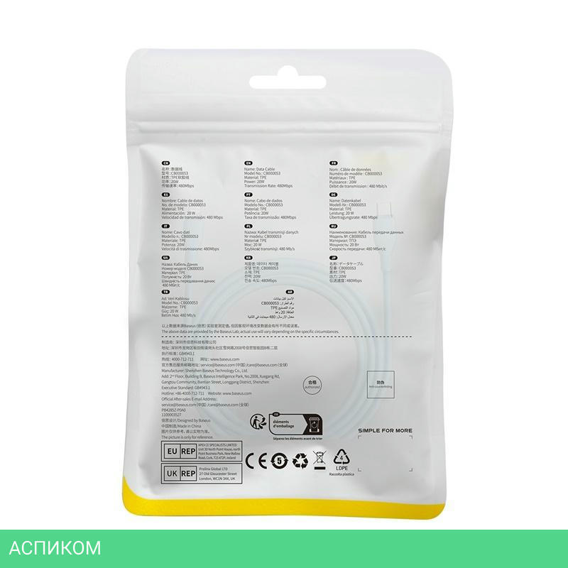 кабель / для компьютера; для смартфонов и планшетов / передача данных; питание устройств / Lightning; Type C Power / 2.0 / голубой