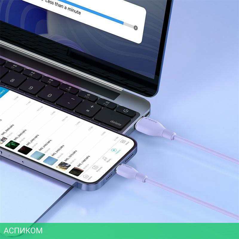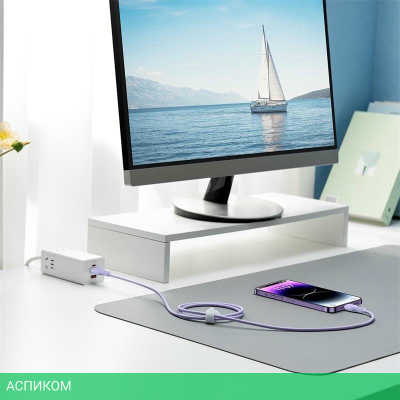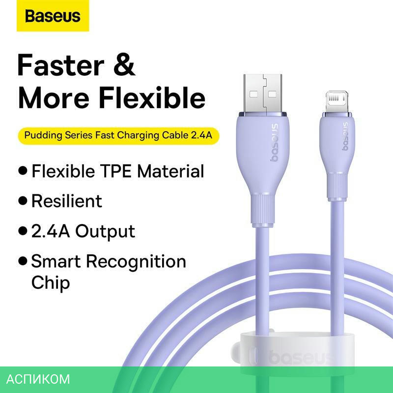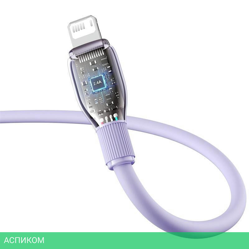 кабель / для смартфонов и планшетов / передача данных; питание устройств / Lightning; USB 2.0 Type-A / 1.2 / фиолетовый