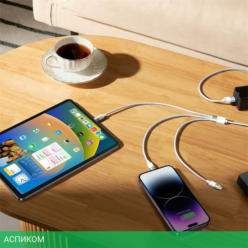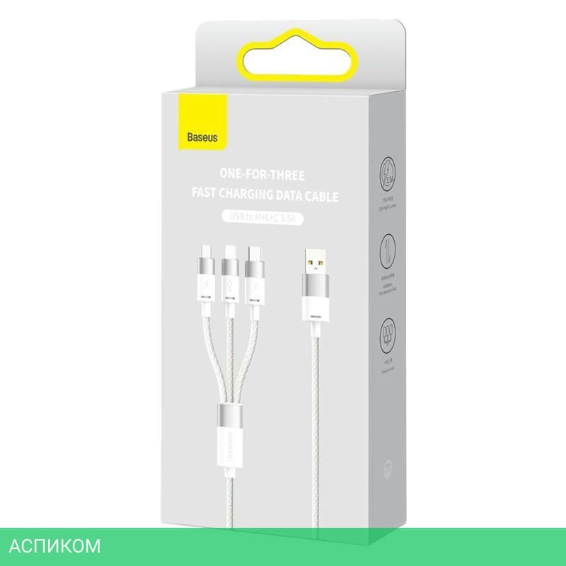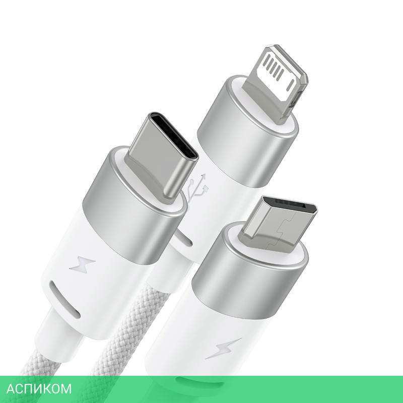 кабель / для смартфонов и планшетов / передача данных; питание устройств / белый / Lightning; microUSB 2.0; USB 3.0 Type-C