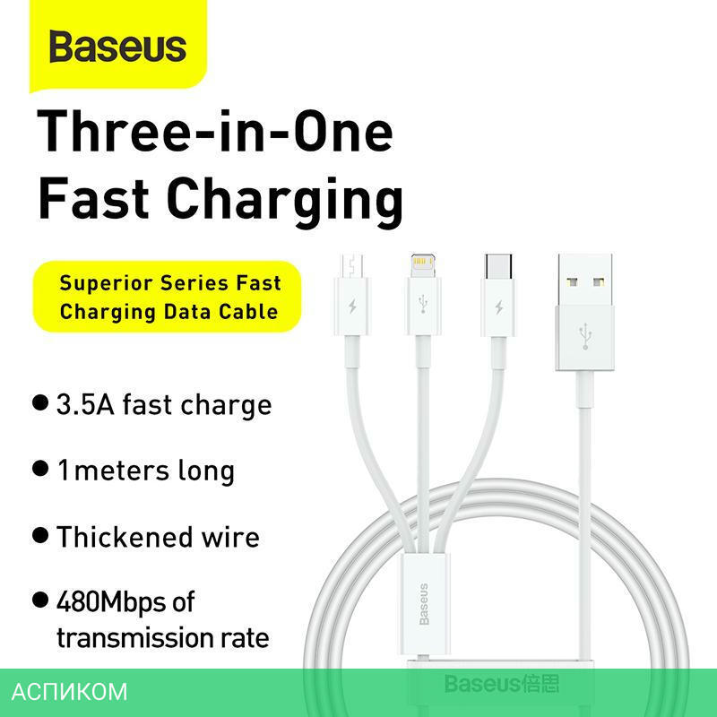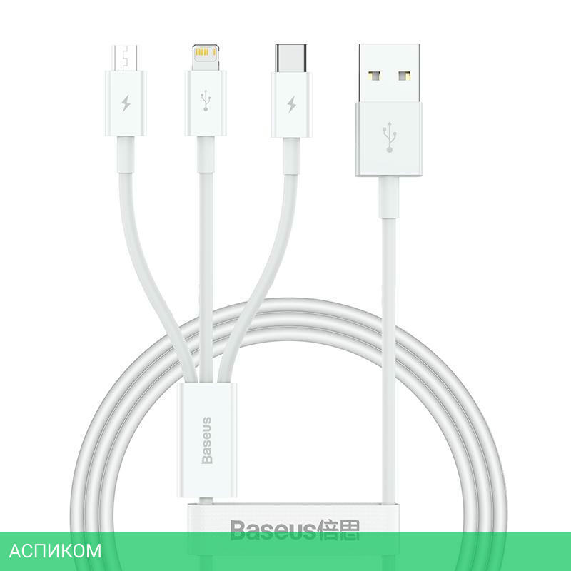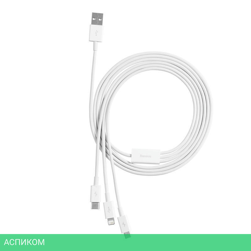 кабель / для смартфонов и планшетов / передача данных; питание устройств / белый / USB 2.0 Type-C; Lightning; USB 2.0 Type-A; microUSB 2.0 / 1.0