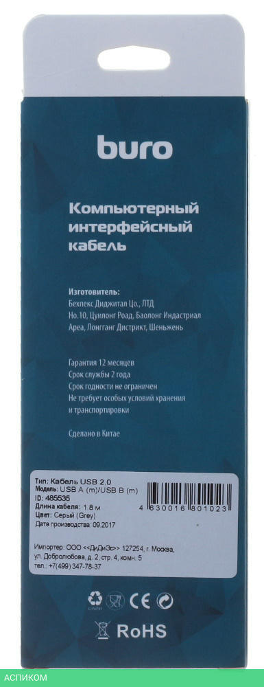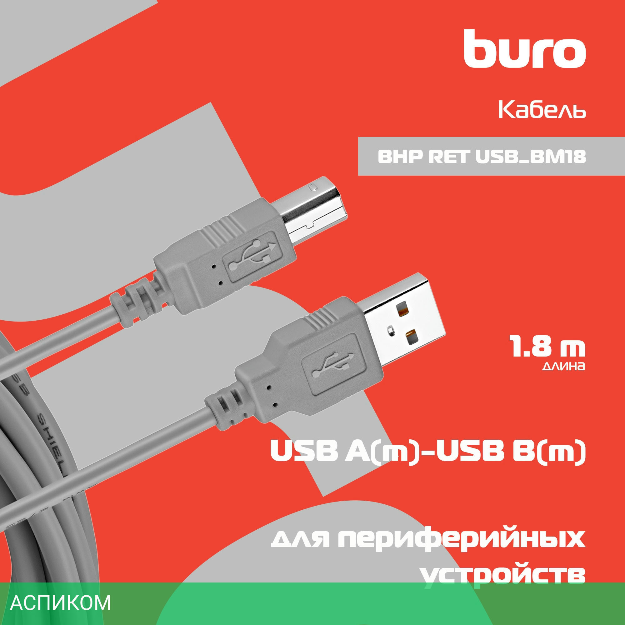 кабель / для принтера / питание устройств / серый / USB 2.0 Type-B; USB 2.0 Type-A / 1.8