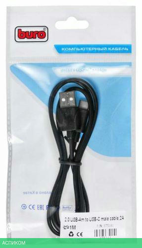 кабель / для смартфонов и планшетов / передача данных; питание устройств / черный / USB 2.0 Type-C; USB 2.0 Type-A / 1.0