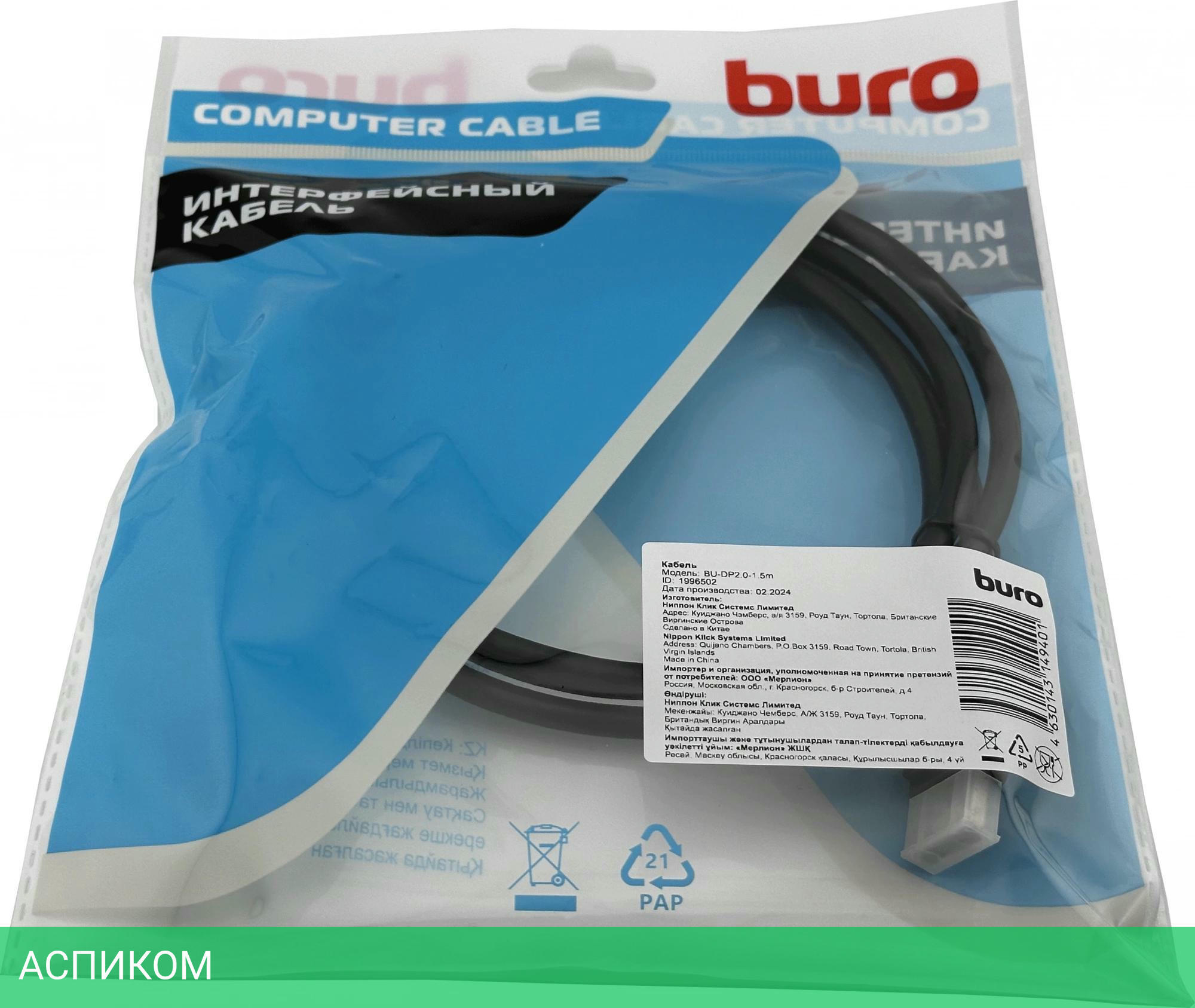 кабель / для компьютера; для смартфонов и планшетов / передача аудио; передача видео / черный / DisplayPort / 1.5