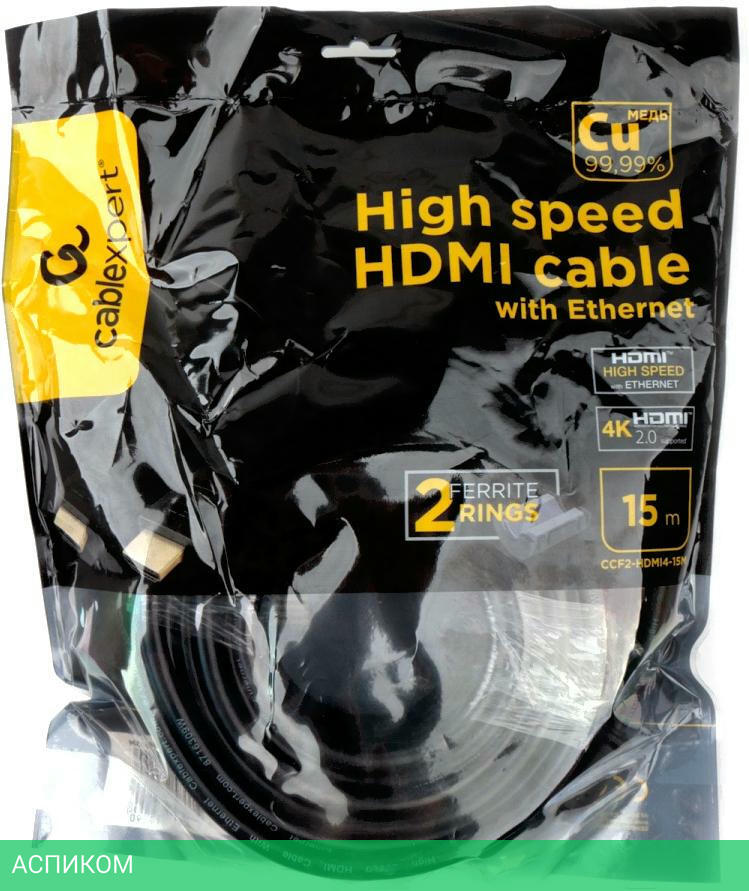 кабель / для av-аппаратуры; для компьютера / передача аудио; передача видео / черный / HDMI / 15.0