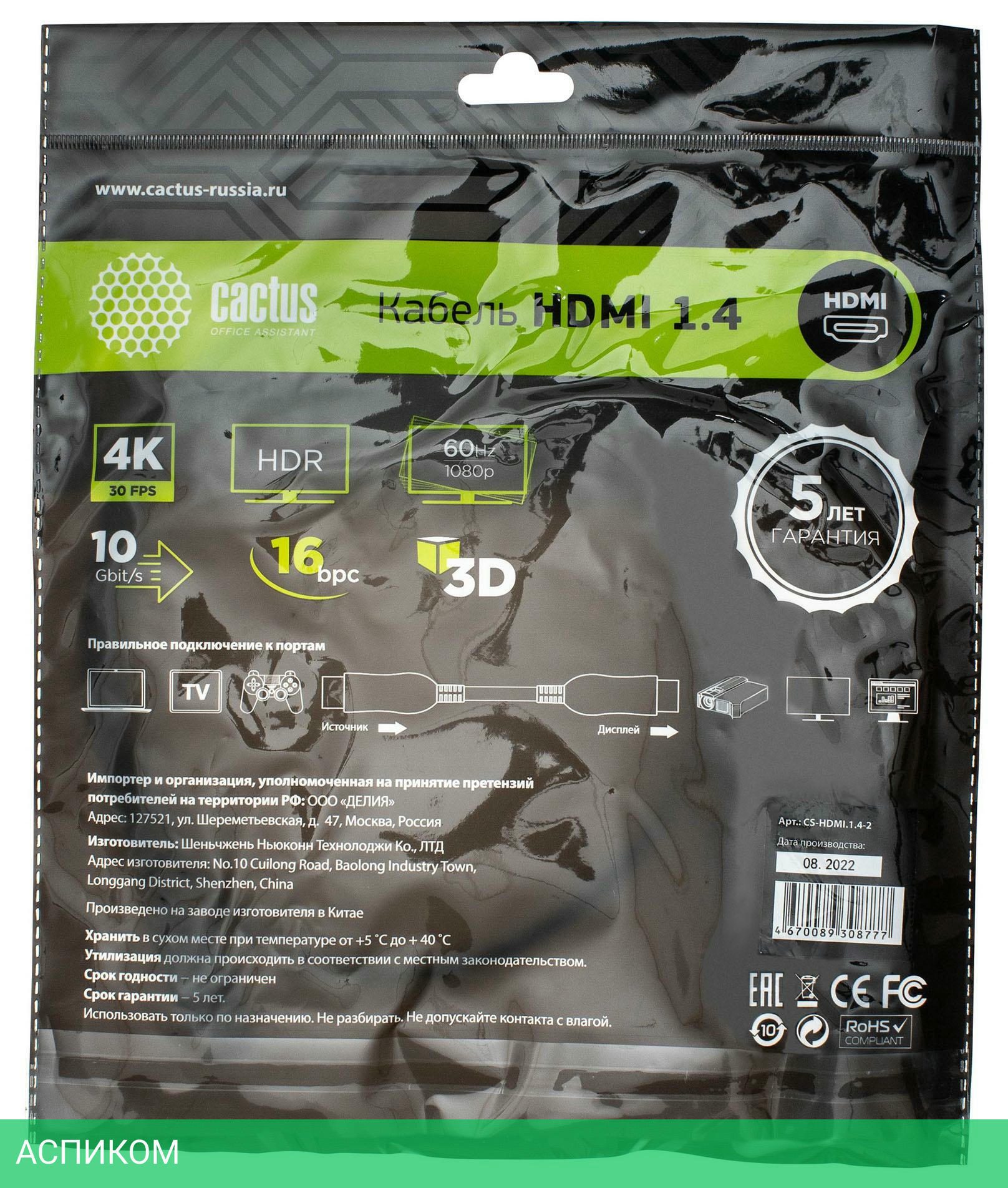 кабель / для av-аппаратуры; для монитора/телевизора; для телефонов и планшетов / HDMI / черный / передача видео; передача аудио / 2.0