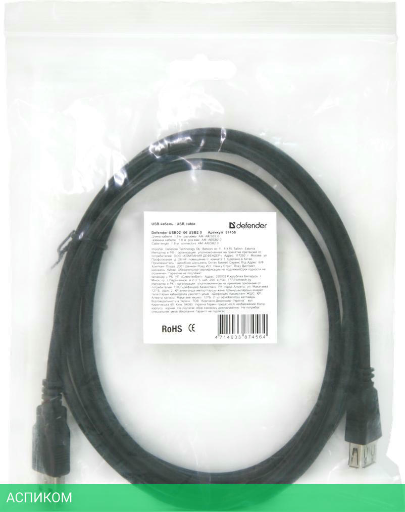 черный / удлинитель / для компьютера / передача данных / USB 2.0 Type-A / 5.0
