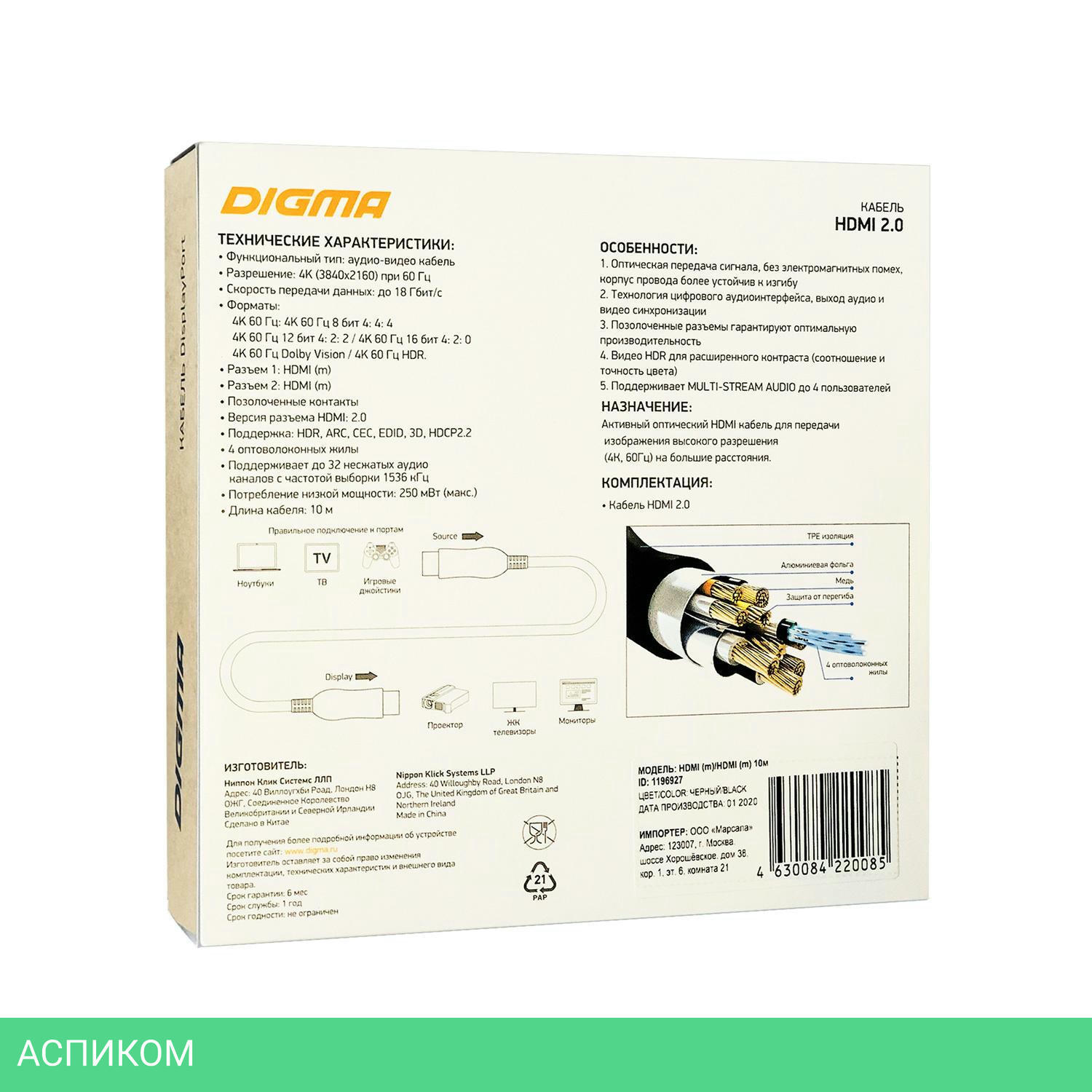 кабель / для av-аппаратуры; для монитора/телевизора / HDMI / черный / передача видео; передача аудио / 10.0