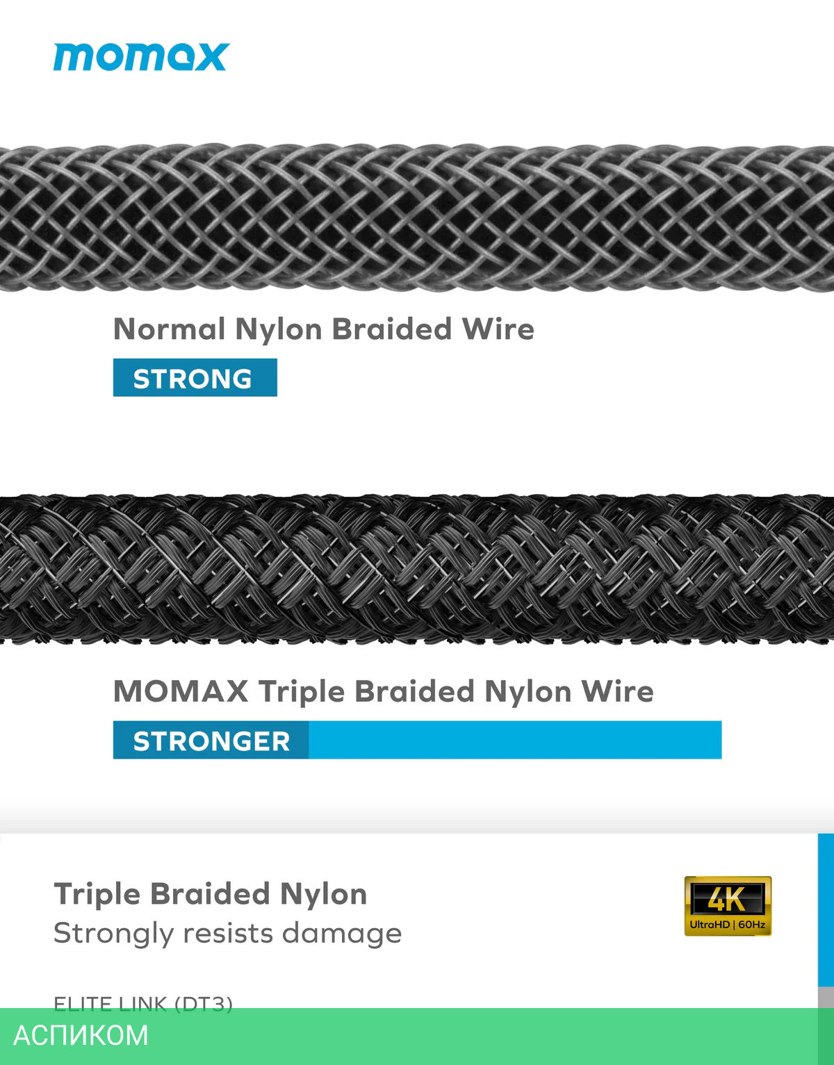 - высокая пропускная способность передачи данных до 18 Гбит/с - поддержка разрешения видео 4K - прочная конструкция из нейлона с тройным плетением