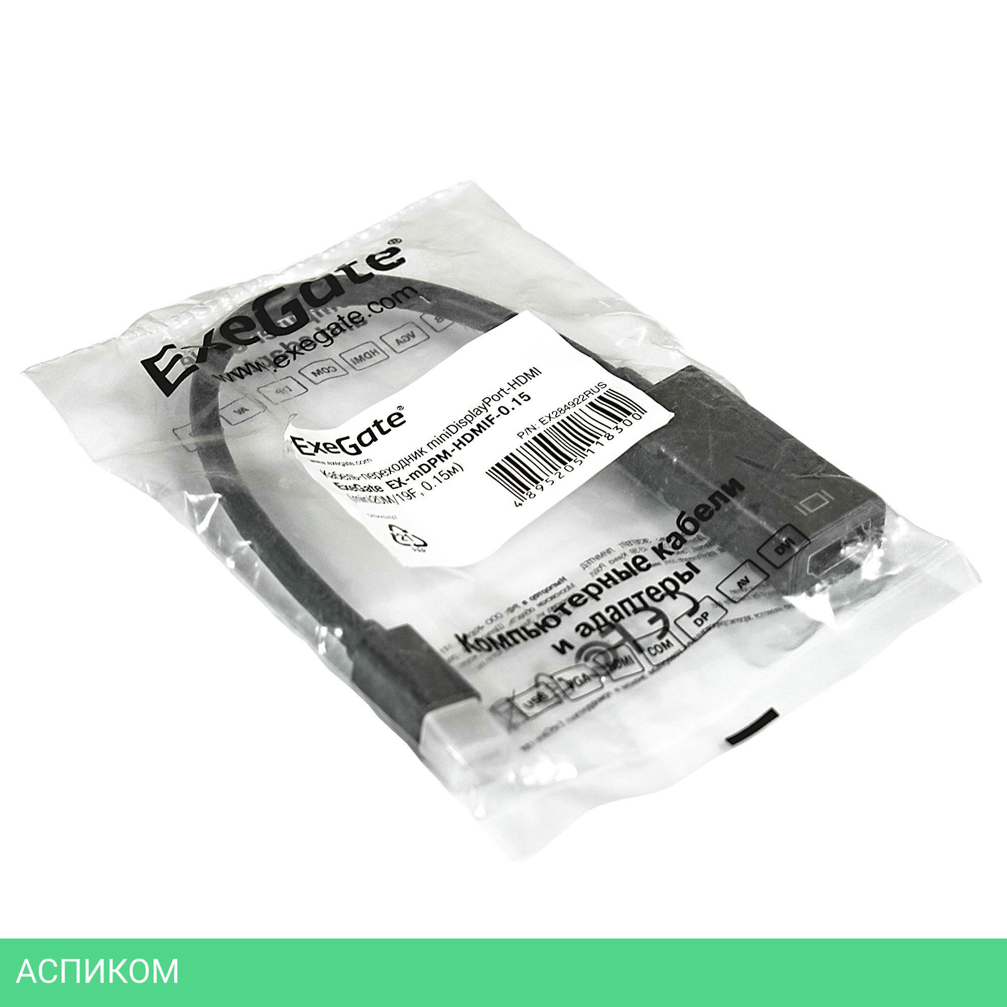 черный / адаптер / для компьютера; для av-аппаратуры / передача видео; передача аудио / HDMI; mini DisplayPort / 0.15
