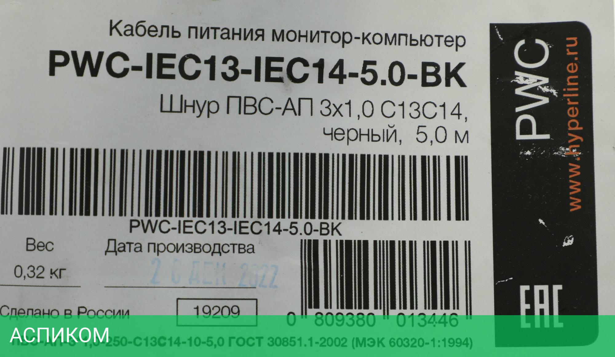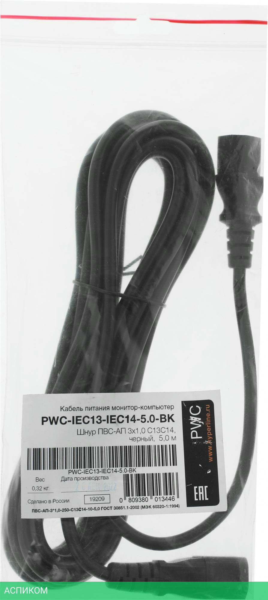 кабель / для монитора; для компьютера / питание устройств / IEC C19; IEC C13 / 5.0 / черный