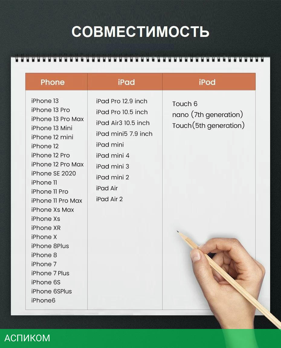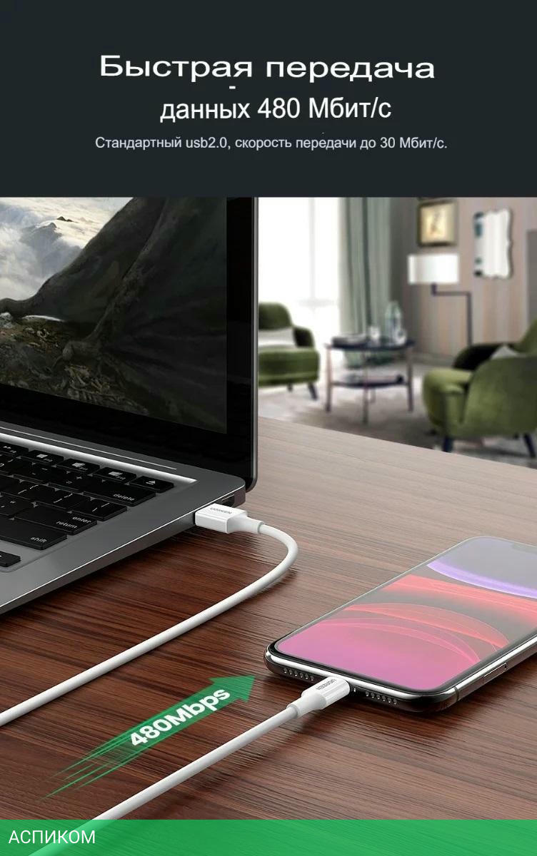 кабель / для смартфонов и планшетов / передача данных; питание устройств / Lightning; USB 2.0 Type-A / 0.5 / белый