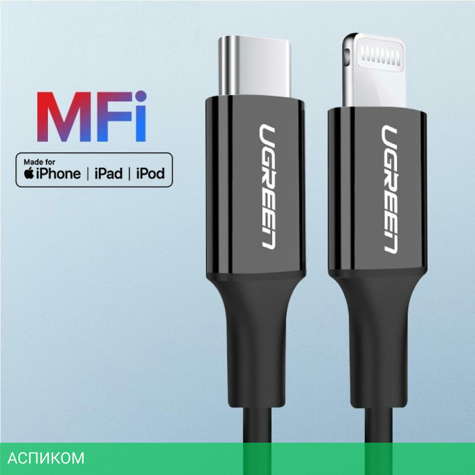 кабель / для смартфонов и планшетов / передача данных; питание устройств / USB 2.0 Type-C; Lightning / 1.0 / черный