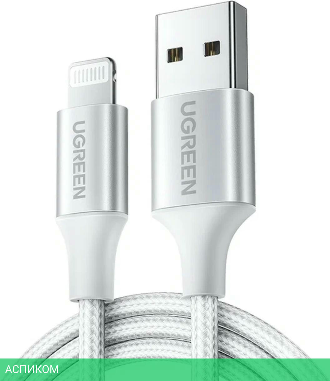 кабель / для смартфонов и планшетов / передача данных; питание устройств / Lightning; USB 2.0 Type-A / 1.5 / серебристый