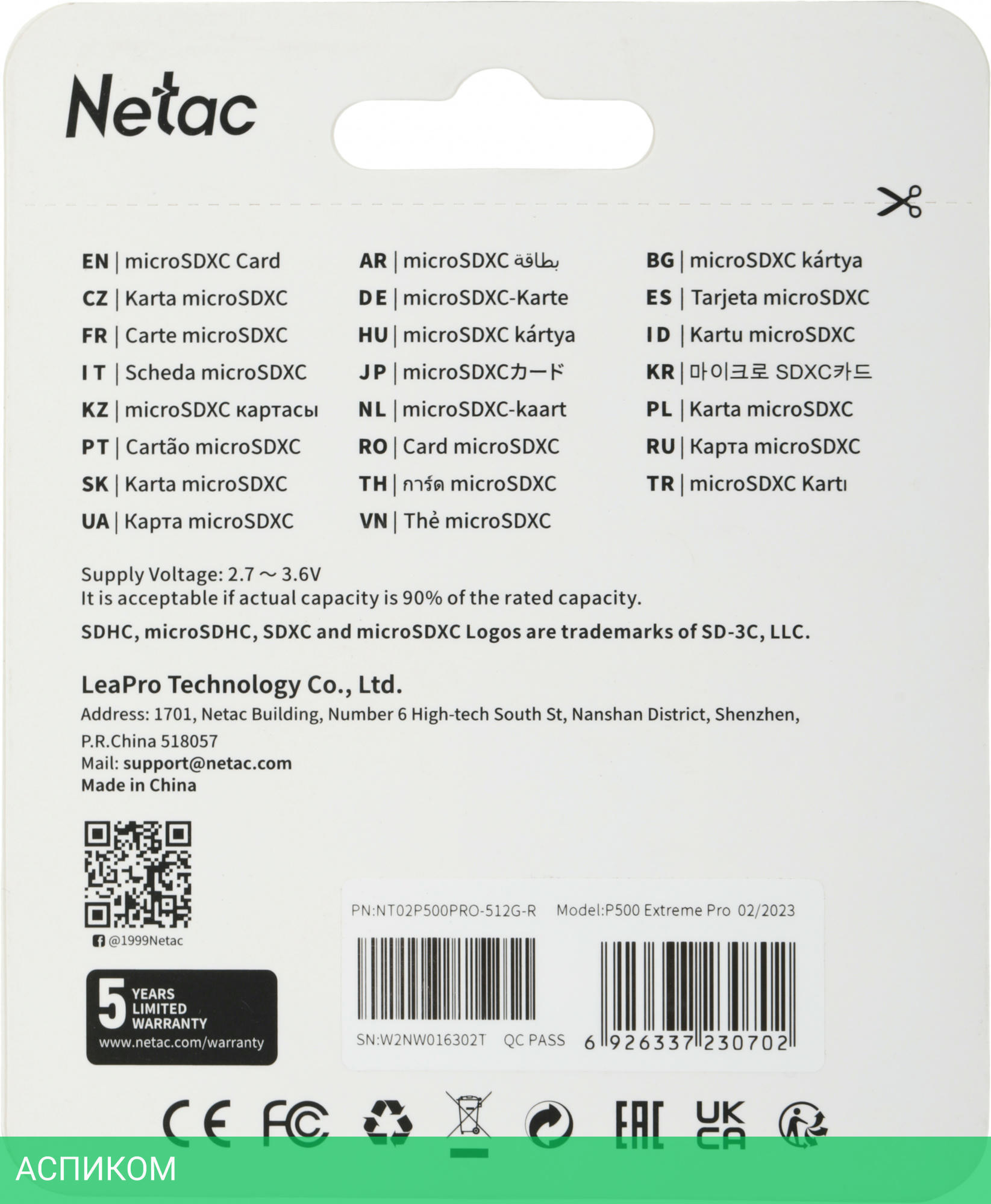 microSDXC / 512.0 / 10 / да / 100.0 / 100.0