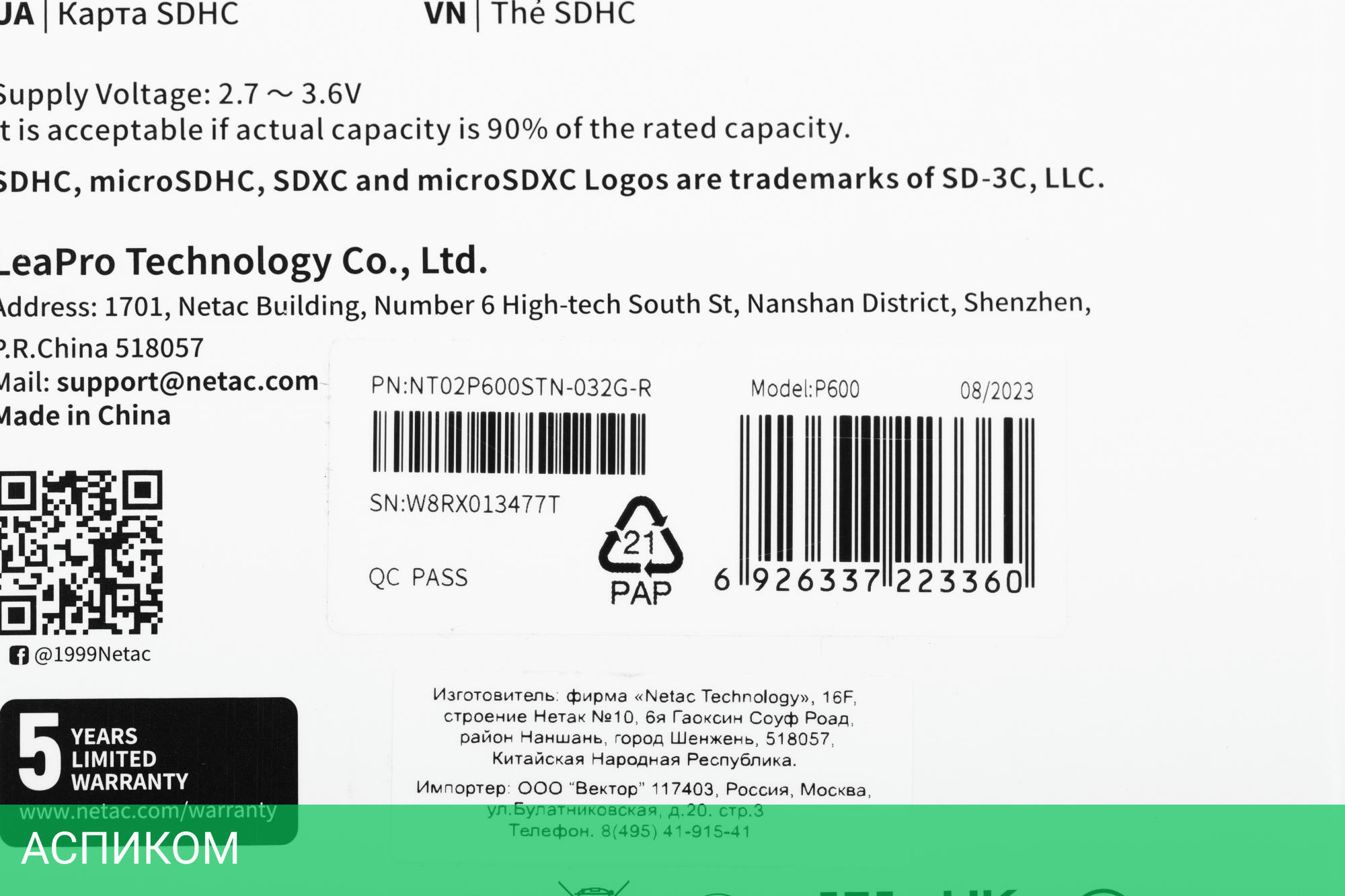 SDHC / 32.0 / 10 / нет / 80.0 / 80.0