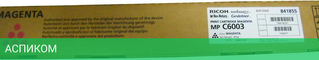 тонер-картридж / для лазерного принтера / 1 / 1 / 22500 / пурпурный / Ricoh MP C4503; Ricoh MP C5503; Ricoh MP C6003