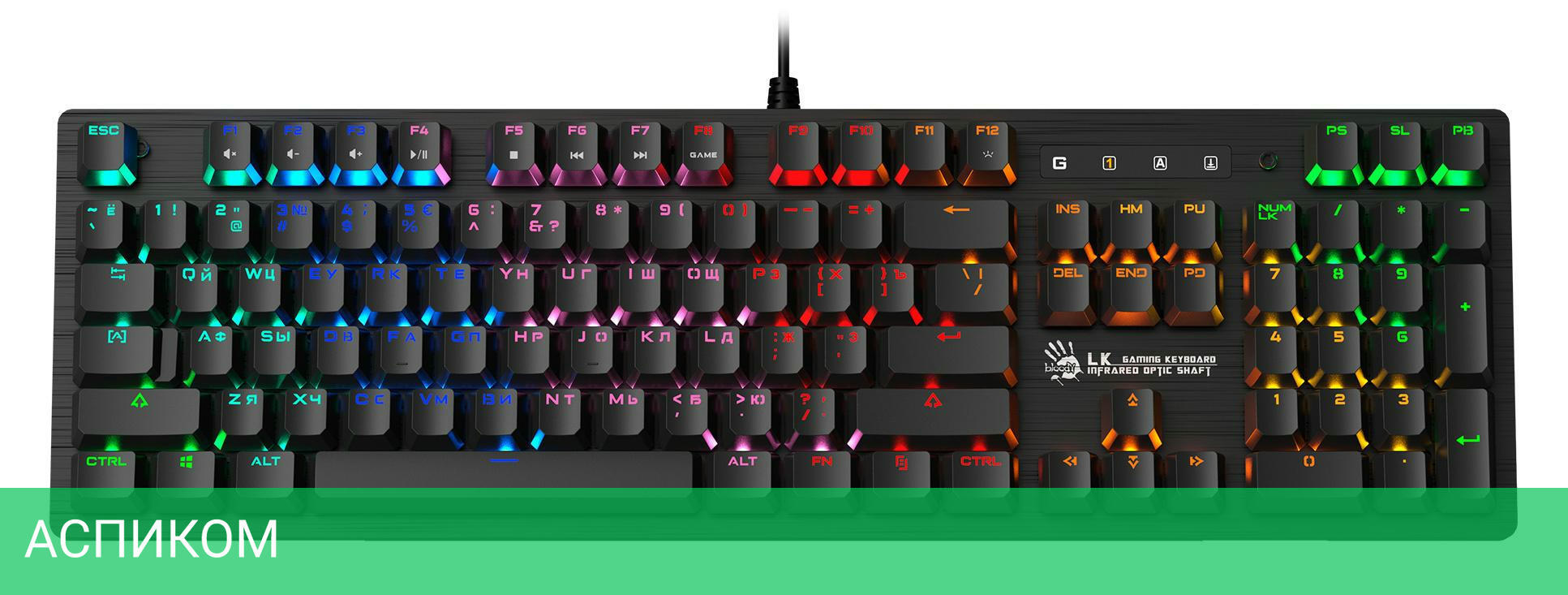 клавиатура A4Tech Bloody B820R, экстрактор для смены клавиш, 8 сменных кейкапов, документация