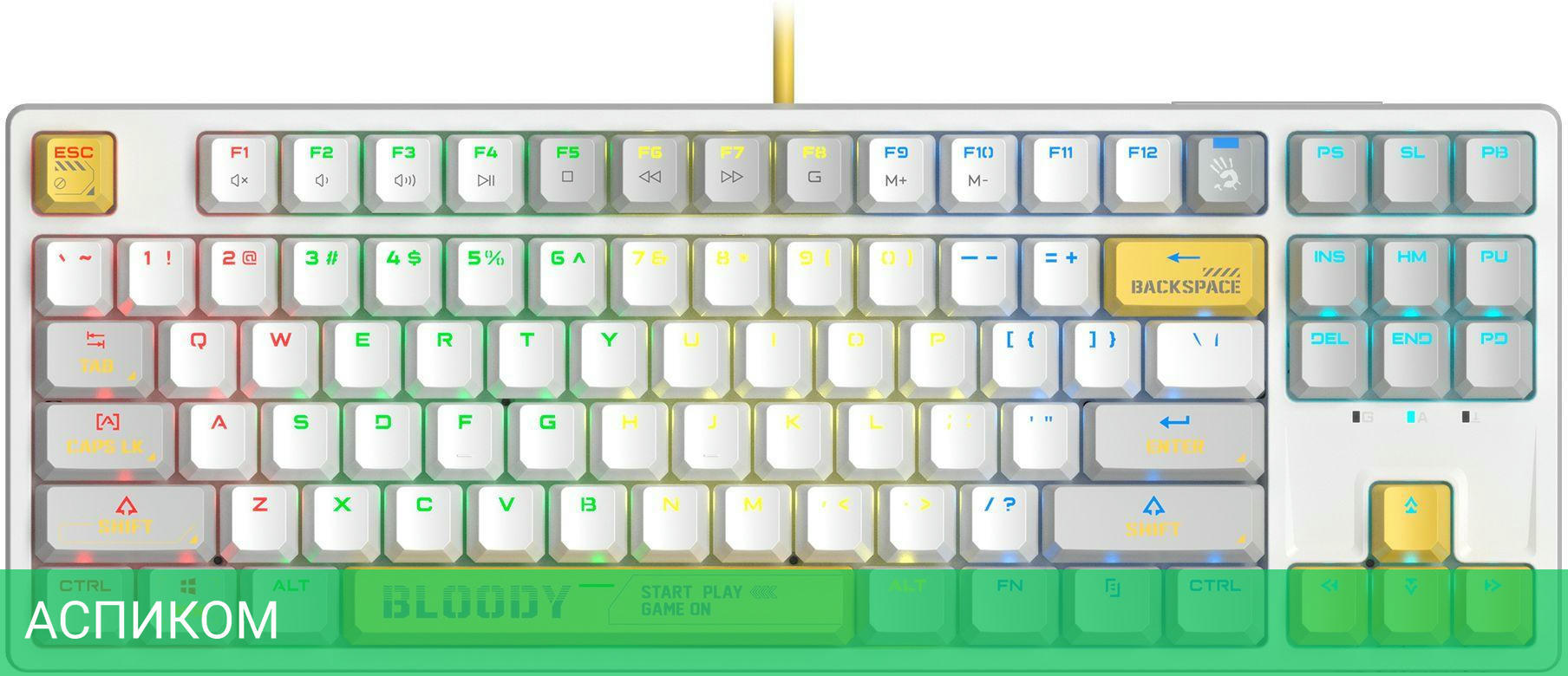 игровая / для ПК / USB / белый / механическая / нет / да / нет / пластик / да