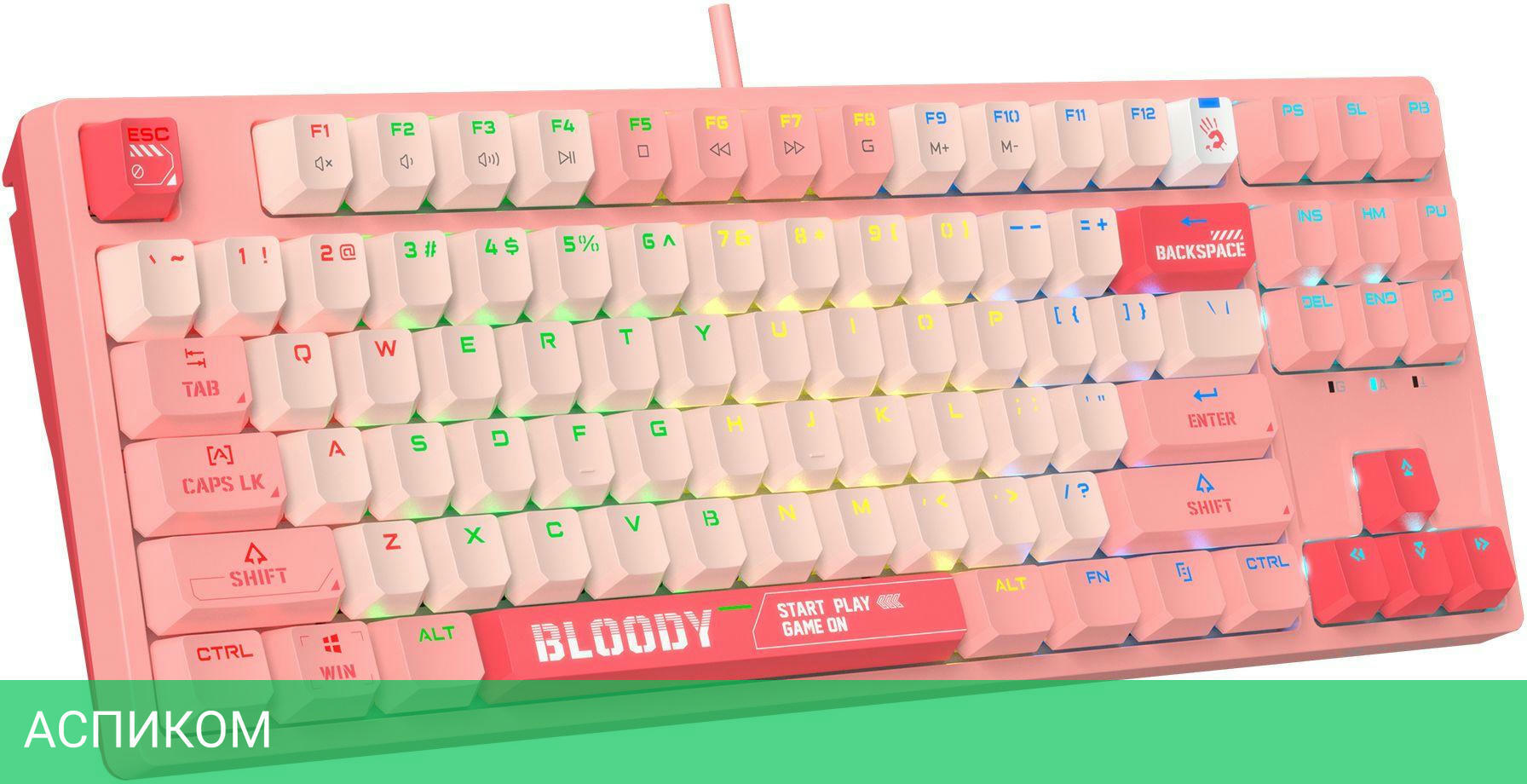 игровая / для ПК / USB / розовый / механическая / нет / да / нет / пластик / да