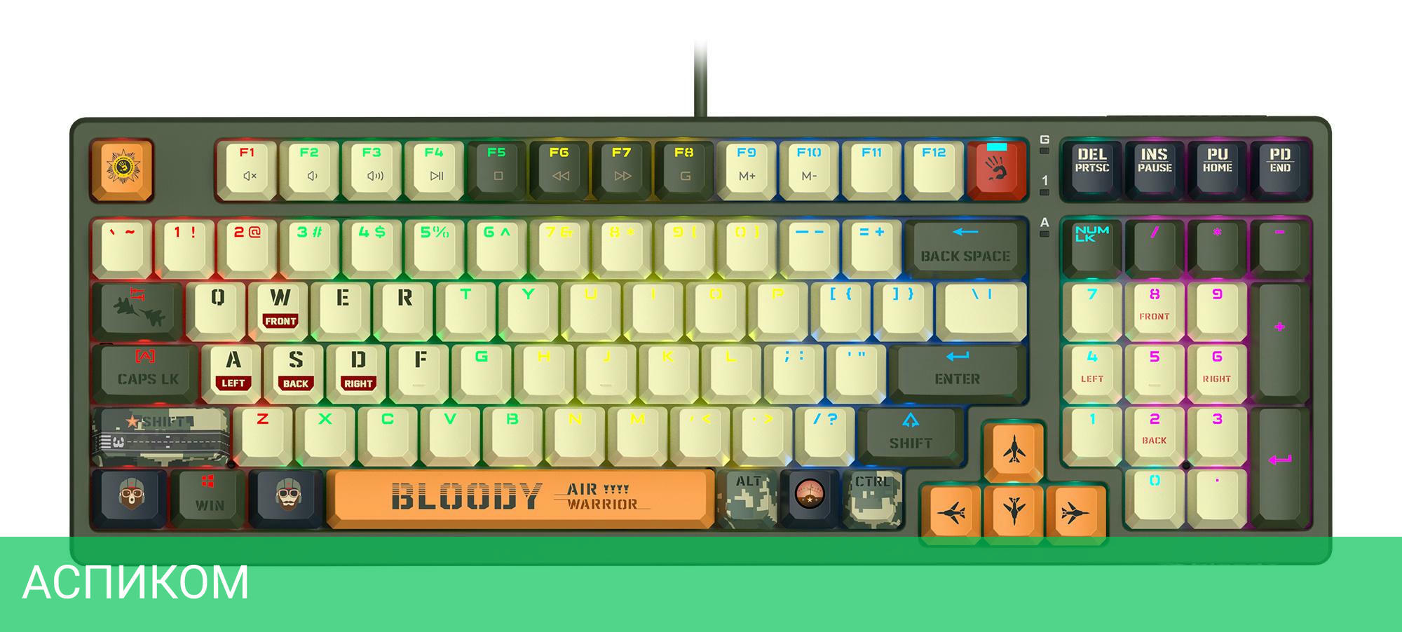 игровая / для ПК / USB / зеленый / механическая / нет / да / да / пластик